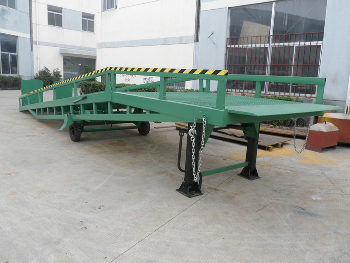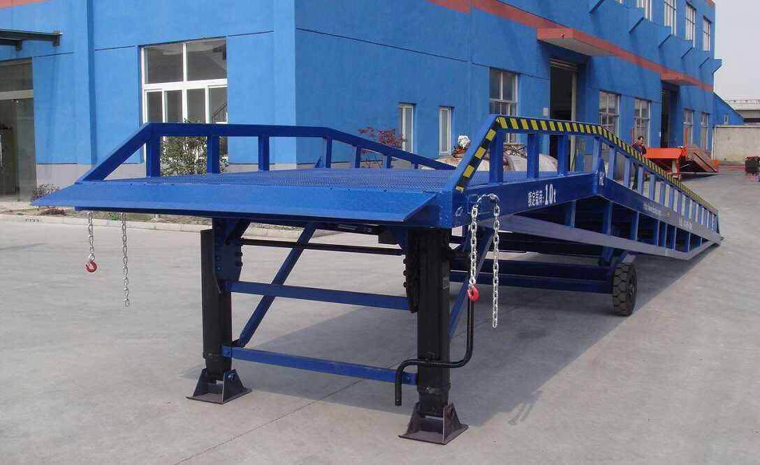 移動式液壓登車橋是與叉車配合使用的貨物裝 卸專用輔助設(shè)備。有了它,叉車能直接從地面駛?cè)肫囓噹麅?nèi)部進(jìn)行 批量裝卸作業(yè)。