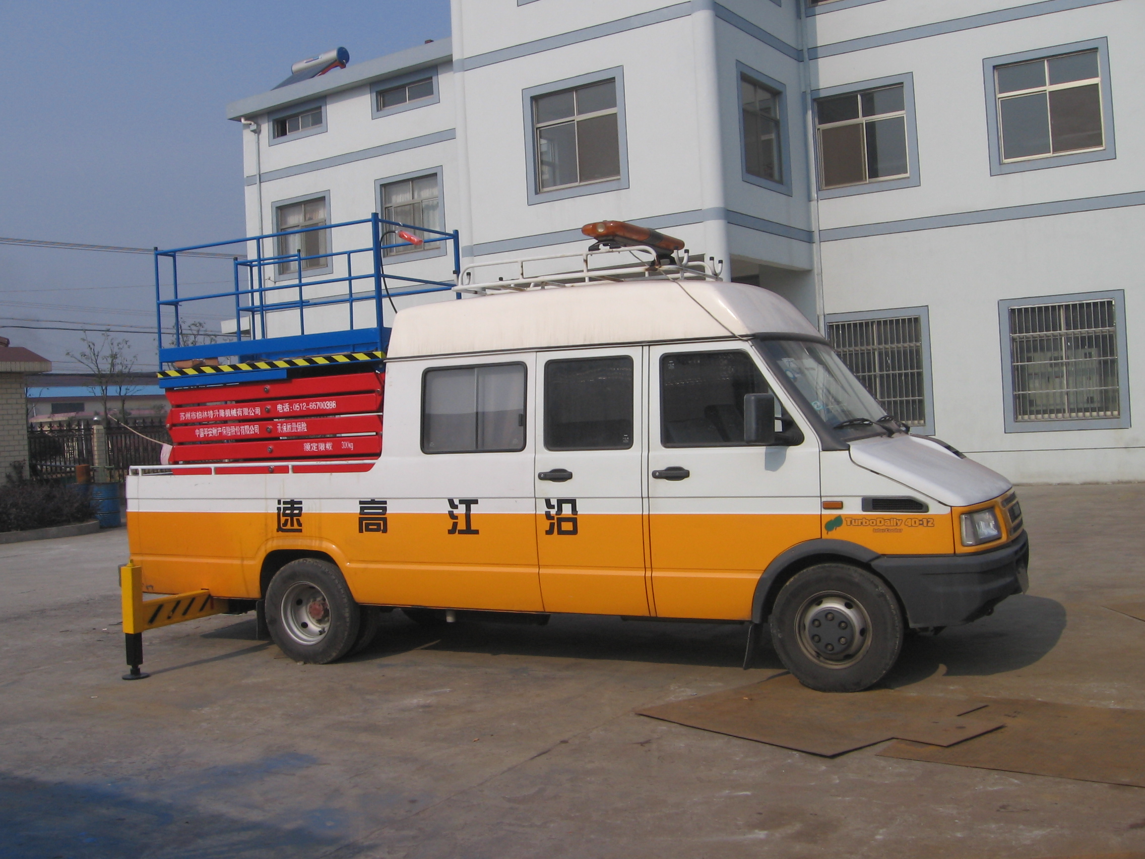 車(chē)載式高空作業(yè)臺(tái)是由升降臺(tái)與電瓶車(chē)或汽車(chē)配套改裝的高空作業(yè)設(shè)備。升降臺(tái)利用車(chē)輛的直流電或引擎動(dòng)力驅(qū)動(dòng)升降。