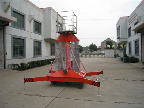 套缸式高空作業(yè)臺為多級液壓缸直立上升,液壓缸高強度的材質(zhì)和良好的機械性能,塔形梯狀護架,使升降平臺有更高的穩(wěn)定性。